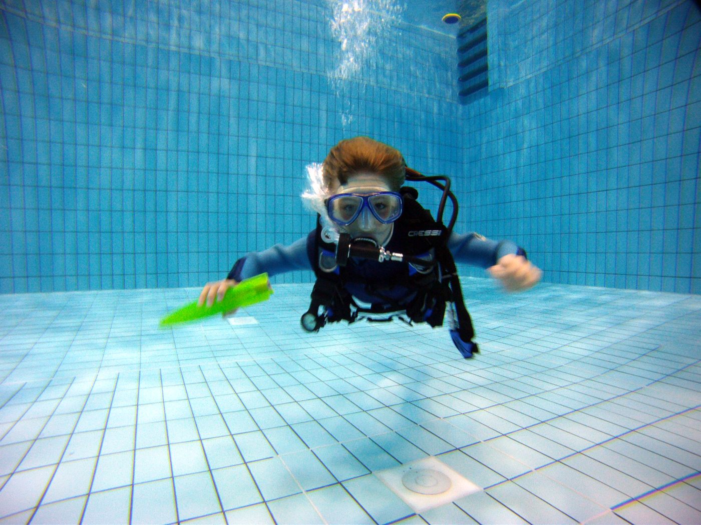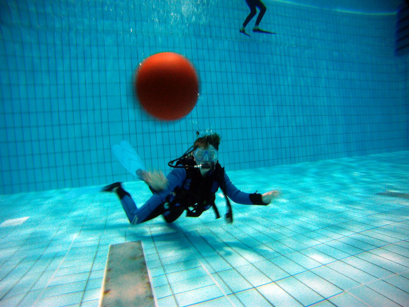 Die Ausbilder hatten hier das eine oder andere Unterwasserspielgerät mit dabei. So vergingen die gut zwanzig Minuten Tauchzeit pro Kind wie im Fluge.