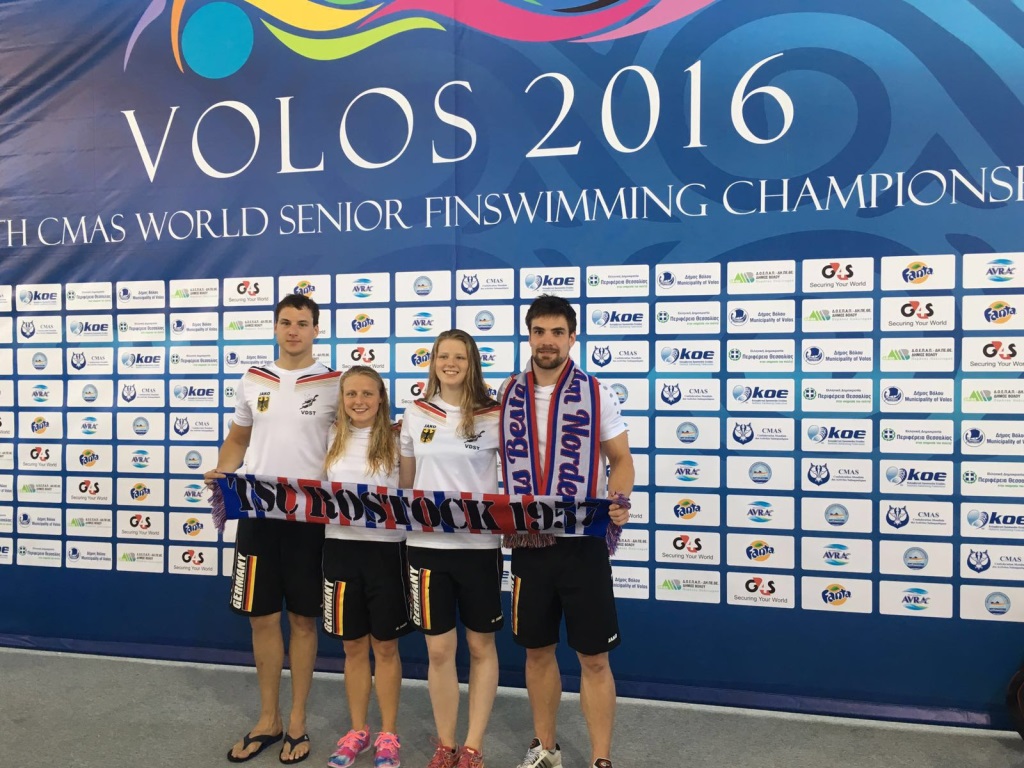 Unsere Flossenschwimmer Anne Eisenberg, Carolin Haase, Jens Peter Ostrowsky und Max Lauschus haben sich bereits am Wochenende auf den Weg nach Volos (Griechenland) gemacht. Nach einigen Tagen der Akklimatisation und Training im Wettkampfbecken finden von Freitag bis Dienstag die Entscheidungen im Becken und Freigewässer statt. Wir drücken unseren vier Athleten die Daumen.