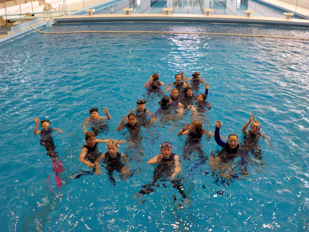 Nach einer kurzen Einweisung aller Kinder und ihrer Eltern am Samstag morgen und der anschließenden Klärung der Voraussetzungen und Formalitäten ging es mit dem ersten der notwendigen Theorieblöcke weiter. Anschließend konnte es endlich ins Wasser gehen. In der Schulschwimmhalle lernten die Kinder den Umgang mit der ABC-Ausrüstung - Flossen, Maske und Schnorchel und absolvierten die Aufgaben für die Schnorchelabzeichen "Otter" und "Robbe" sowie das KTSA. Mit den Aufgaben und etwas Zeit zum Spielen waren die zwei Stunden wie nix verflogen.