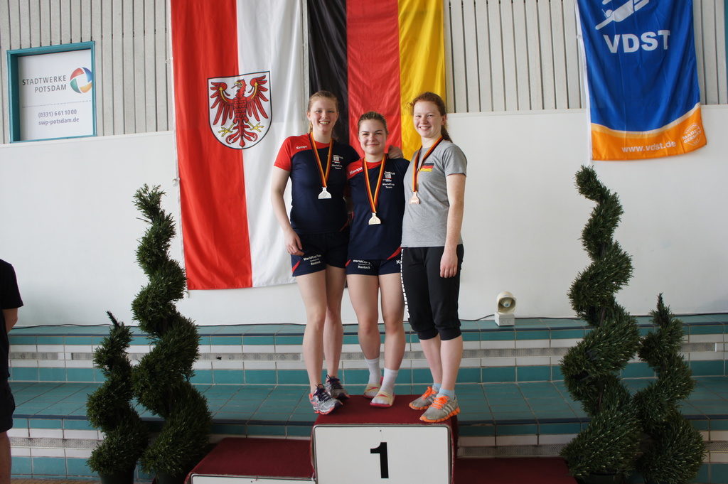 Auch die Mädchen ließen in der Besetzung Nele Rudolf, Nina Heldt, Anne Eisenberg und Delia Lübcke bei den Staffeln die Konkurrenz weit hinter sich und gewannen souverän den Titel. Neben Nele Rudolf konnten sich zudem Nina Heldt und Anne Eisenberg in den Einzeldisziplinen in die Siegerlisten eintragen und die WM-Norm zum Teil erfüllen.
