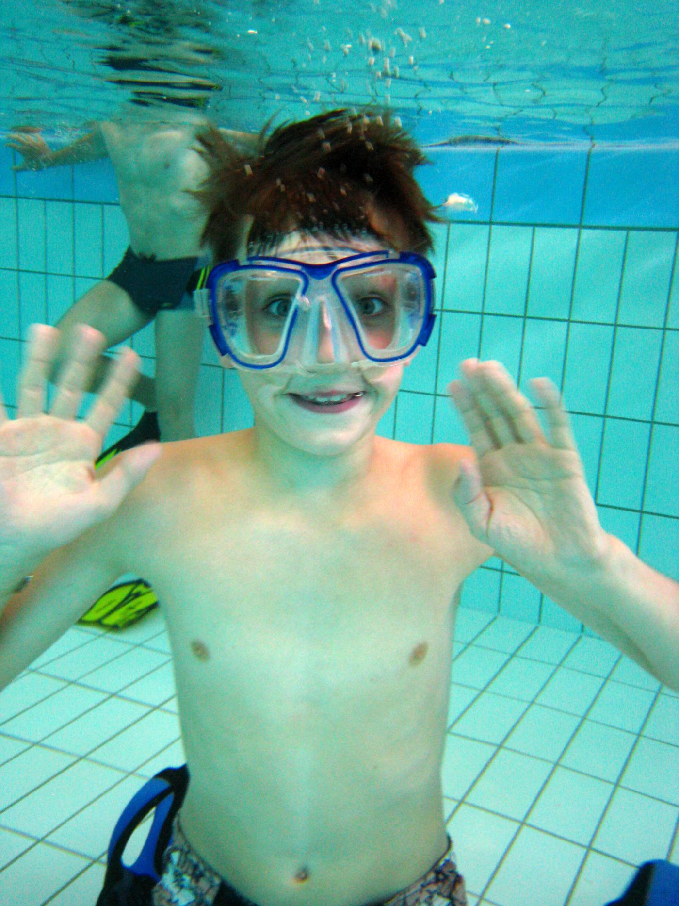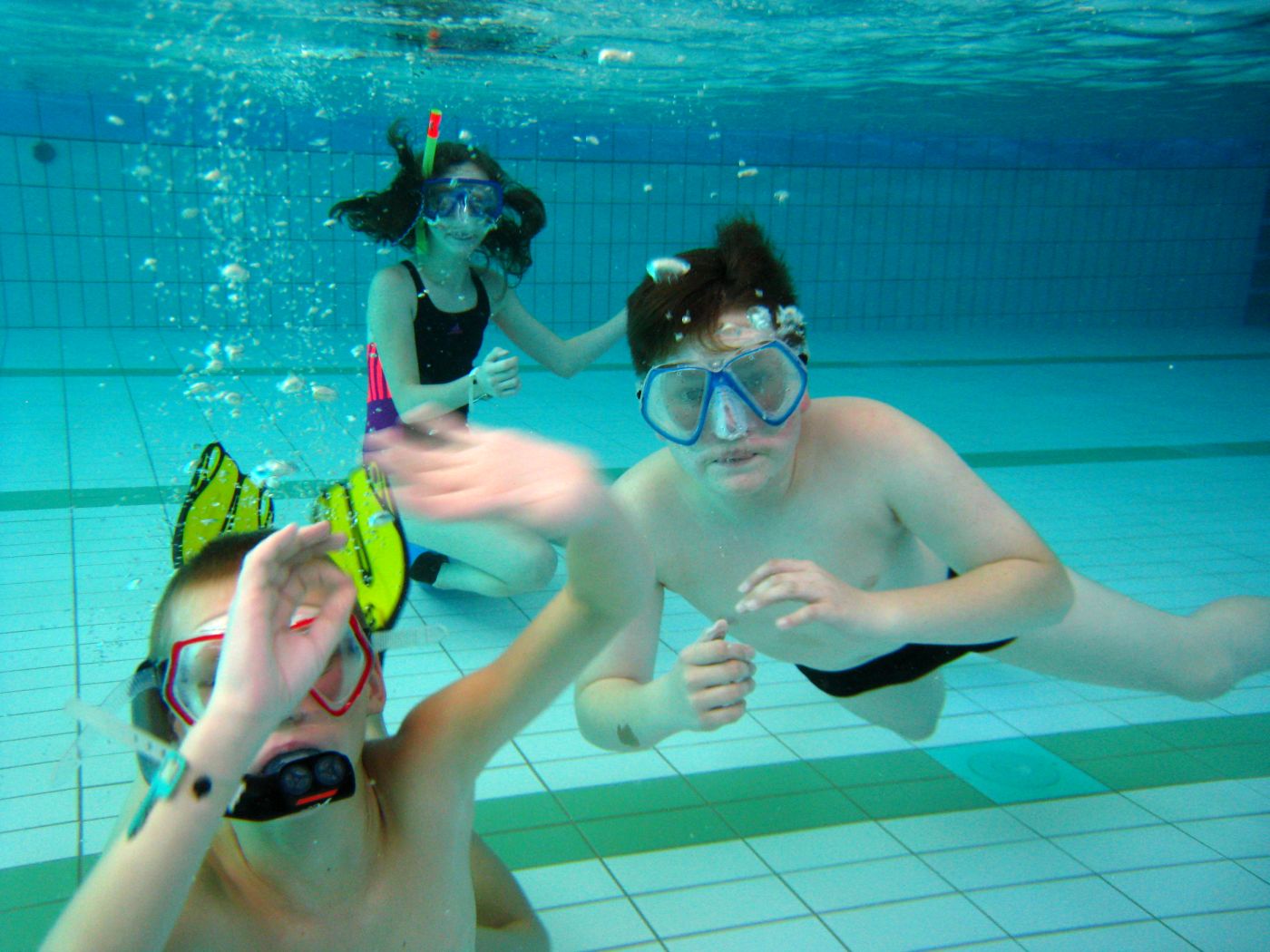 Die Ausbilder hatten hier das eine oder andere Unterwasserspielgerät mit dabei. So vergingen die gut zwanzig Minuten Tauchzeit pro Kind wie im Fluge.