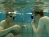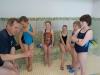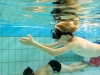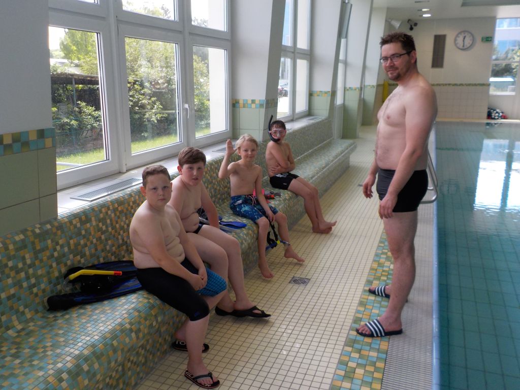Im Wasser Teil 3 ging es dann für alle nochmal ins Sprungbecken. Mit den Erfahrungen des Vortages fühlten sich alle schon fast wie die Fische im Wasser. Im UW-Spiegel an der Beckenwand konnten sich alle kleinen Taucher erstmals selbst begutachten, um sich dann mit der Vielzahl an UW-Spielzeug zu beschäftigen. So verflog auch hier wieder die Zeit wie im Fluge und der Luftvorrat der 4-l-Flasche auf dem Rücken erreichte langsam den Reservebereich. Zum Abschluss konnten alle nochmal ihren Mut bei Sprüngen vom 3m und 5m-Meter-Brett beweisen.