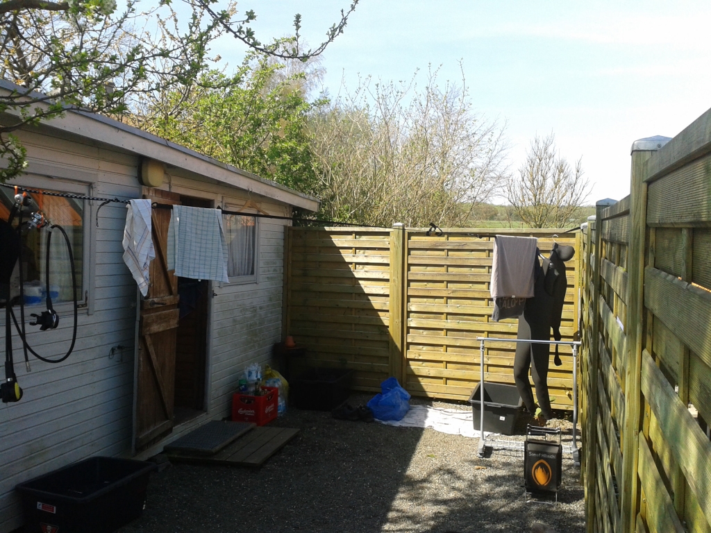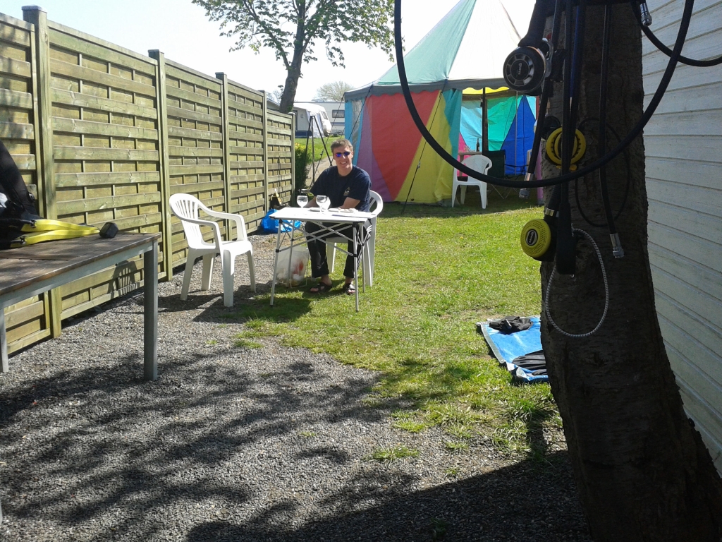 Am Campingplatz angekommen bezogen wir die altehrwürdige „Ausbilderhütte“ Hytte 4, der die Jahrzehnte inzwischen doch etwas anzumerken sind; die allerdings als Taucherunterkunft bei dem guten Wetter vollkommen ausreicht. Da die Preetzer erst am Donnerstag anreisten, ließen wir den Abend mit einer Begehung des Platzes und bei selbst gemachten Burgern am Grill ausklingen.