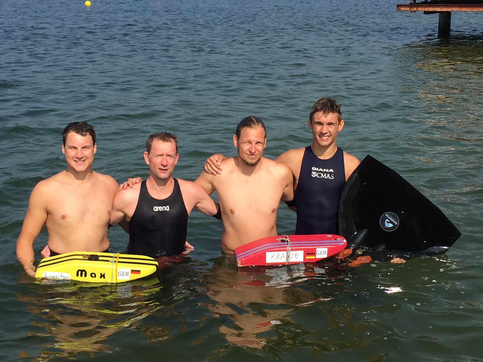 Die Orientierungstaucher des TSC Rostock 1957 haben einen tollen Abschluss der EM im Orientierungstauchen erreicht. In der Mannschaftstreffübung (MTÜ) tauchten Katharina Benck, Paula Krüger und Angelika Rinck zusammen mit Babette Fürstenberg (Babelsberg) auf den Silberrang. Die Herren Max Lauschus und Jannik Buhr konnten zusammen mit Willi Krause und Daniel Sonnekalb (beide Delitzsch) den Gewinn der Bronzemedaille bejubeln.