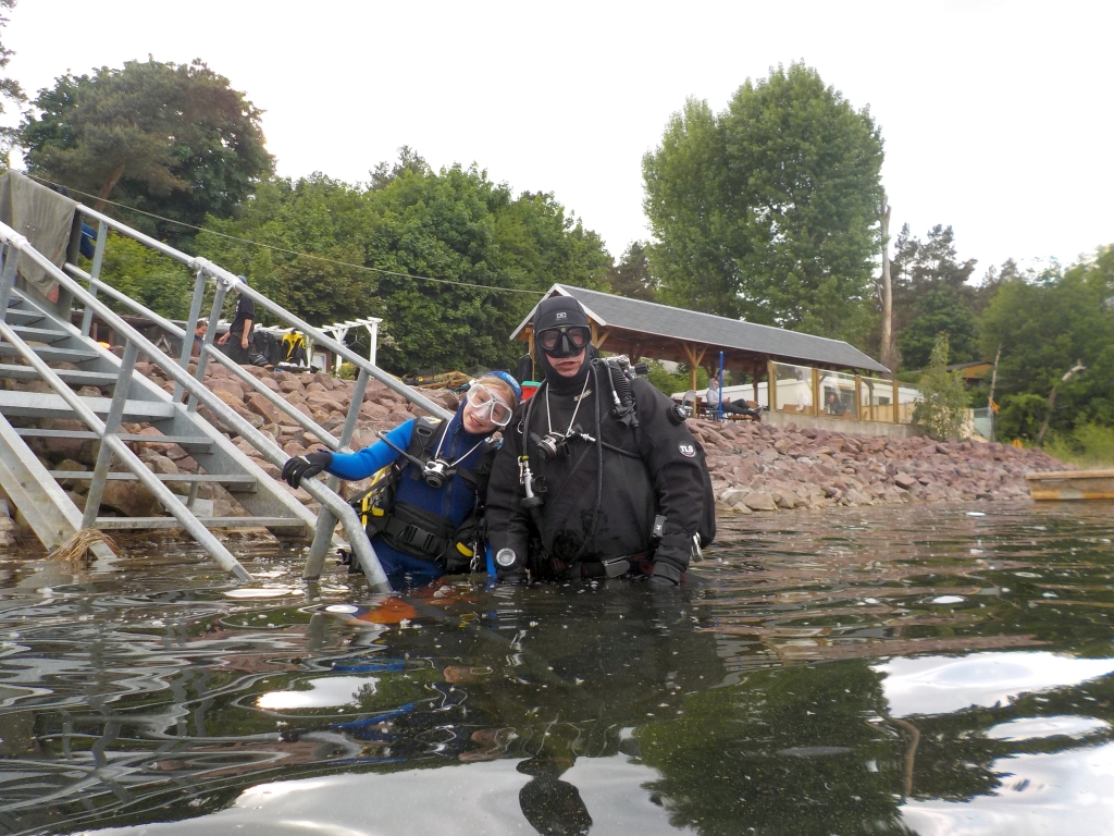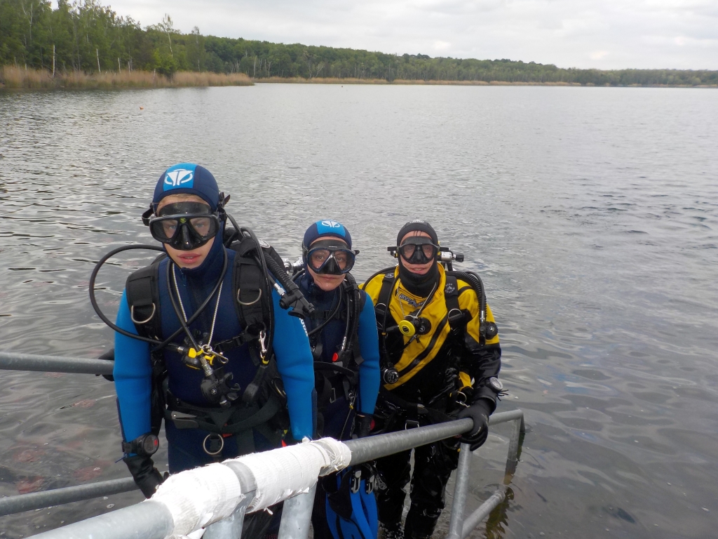 Die Schüler des TSC Rostock 1957 führt der Weg so für vier Tage nach Sandersdorf auf die Tauchbasis des TC Delitzsch. Zusammen mit den Wettkämpfern des TSC, die sich paralell auf das Orientierungstauchen vorbereiteten, konnten wir mit gut 30 Personen die hervoragenden Bedingungen an der "Förstergrube" nutzen. Für jeden Teilnehmer ging es so zweimal am Tag zur Ausbildung ins Wasser. Am Freitag Abend fand für einige ein dritter Tauchgang bei einsetzender Dunkelheit als Nachttauchgang statt, eine ganz spezielle Erfahrung, ist doch die Sicht auf den Lichtkegel der Unterwasserlampen reduziert. Auch das Wetter spielte an allen Tagen besten mit und so konnten alle die guten Bedingungen optmal nutzen und es gab am Ende einen großen Applaus für Zehn frisch gebackene Einstern-Taucher!